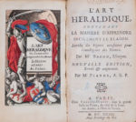 Edition illustrée d'un frontispice et de 35 planches offrant de nombreuses figures d'armoiries, le tout gravé sur cuivre. Exemplaire dont toutes les planches ont été en partie coloriées (rouge, bleu et vert).