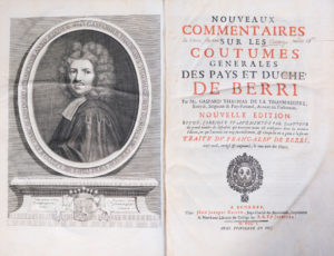 [Berry]. — THAUMAS DE LA THAUMASSIÈRE (Gaspard). — Nouveaux commentaires sur les coutumes générales des pays et duché du Berri. — Nouvelle édition… — Joint à la fin un Traité du Franc-alleu de Berri. — Bourges, Jean-Jacques Cristo,...