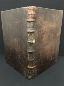 Veau brun époque, dos à 6 nerfs (dos grossièrement restauré, des caissons découverts, mouillures soutenues sur l'ensemble du volume, en l'état).