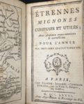 - Étrennes Mignonnes curieuses et utiles. Paris, Durand, 1781. In-16, [44] f., 2 cartes dépliantes (France et environs de Paris), reliure en maroquin vert.