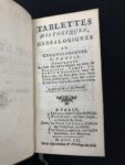 - Tablettes historiques généalogiques et chronologiques… A Paris, Le Gras, 1752. In-24, [2] f., 462 p. Maroquin rouge.