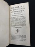 - Mémorial de chronologie généalogiques et historique… A Paris, Ballard, 1753. In-24, [2] f., XX-[330] p. Maroquin rouge.