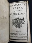- Almanach royal… A Paris, chez D'Houry, 1786. In-16, reliure en maroquin rouge, plats ornés d'un décor à la plaque et aux armes de Cugnot de Fontenay