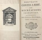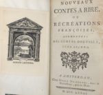 [Gaudriole]. — NOUVEAUX CONTES À RIRE, ou Récréations françoises, augmentées des Contes d'Ouville. — A Amsterdam, chez H. Desbordes, 1773.— 3 tomes en 2 vol. in-12, [4] f., 324 p. + [4] f., 263 p. ; [4] f., 148 p.,