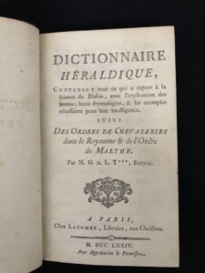 [GASTELIER DE LA TOUR (Denis-François)]. — Dictionnaire héraldique, contenant tout ce qui a rapport à la science du blason, avec l'explication des termes ; leurs étymologies, et les exemples nécessaires pour leur intelligence. — Suivi Des...