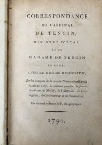 TENCIN (Pierre Guérin de) ; TENCIN (Claudine-Alexandrine Guérin de). — Correspondance du cardinal de Tencin,... et de Mme de Tencin, sa soeur, avec le Duc de Richelieu, sur les intrigues de la cour de France depuis 1742 jusqu'en 1757, et sur-tout...