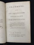 SAINT-JUST (Louis-Antoine-Léon). — Fragmens sur les institutions républicaines. [1800]. — In-8, [1] f., XX-88 p.,