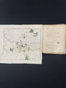 Cartonnage marbré bleu ancien, dos muet, à toutes marges (coupes usées, couture distendue, mouill. claires sur la carte et une dizaine de p. ou pl.).