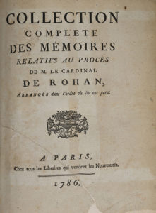 AFFAIRE DU COLLIER DE LA REINE. - Collection complète des Mémoires relatifs au procès de M. le Cardinal de Rohan, arrangés dans l'ordre où ils ont paru. — Paris, Chez tous les Libraires qui vendent les Nouveautés, 1786.