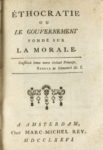 HOLBACH (Baron d'). — Éthocratie, ou Le gouvernement fondé sur la morale. — Amsterdam, Marc-Michel Rey, 1776. — In-8, bradel cartonnage papier maroquiné rouge (Reliure de l'époque).