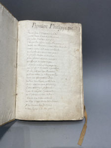 Il s'ouvre par les trois odes philippiques de La Grange-Chancel. On trouve une horrible chanson L'Âme d'un Jésuite descendant aux Enfers ; suivent Les Avocats démasqués, de curieuses Applications de différents endroits de tragédies et de comédie à différentes personnes (le Roi, le Cardinal de Fleury, le cardinal Bissy, le Cardinal de Rohan, des curés de Paris, les Jésuites, etc.), le Brevet de la Calotte pour le parlement d'Aix, une copie de La Calomnie de Voltaire, des Héros du Rhin par Moncrif, une pièce A Mademoiselle de Guise sur son mariage avec le Duc de Richelieu, un Extrait du discours prononcé le jour de Pasques par le prédicateur dans la cathédrale de Paris en son sermon 1727, une liste des différentes adresses fictives et burlesques de différents personnages de la Cour, des Rapsodies gauloisesou liste de 35 livres imprimés en 1735 par divers auteurs (ex : Les Sentimens de Judas, en baisant son Maistre lorsqu'il le trahissoit par les Secrétaires d'État ; diverses pièces : L'Anti-mondin, etc.).
