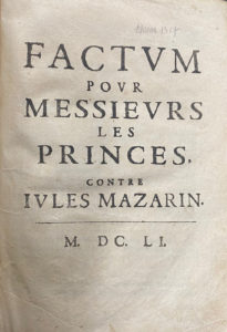 MAZARINADES. - Journal, contenant ce qui s'est passé en la cour de Parlement de Paris, sur le sujet des affaires du temps présent és années 1648 & 1649. — Paris, Gervais Alliot et Jacques Langlois, 1649. - L'Histoire du temps, ou le Véritable...
