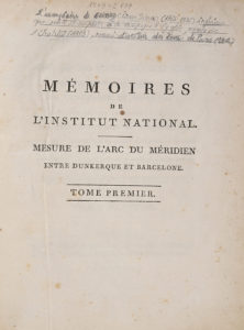En 1790, Talleyrand demande l'unification des poids et mesures. Après avoir adopté le système décimal, l'Académie des sciences chargeait une commission [...] de fixer la base des unités de mesure. [...] la commission adopta le quart du méridien terrestre dont la dix millionième partie serait l'unité de longueur. Borda appela cette unité le mètre. Les astronomes Delambre et Méchain furent chargés de mesurer avec précision l'arc de méridien compris entre Dunkerque et Barcelone. Leurs travaux durèrent près de dix ans, car il fallut surmonter d'énormes difficultés dues principalement à la Révolution (Philippe Zoummeroff in En français dans le texte, n°212).