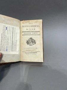 [MIRABEAU (Marquis de)]. — Les Économiques. — Par L. D. H. — Amsterdam, Et se trouve à Paris, Lacombe, 1769. — 2 volumes in-12, veau marbré, filet à froid, dos orné, pièces de titre et de tomaison rouges, tranches rouges (Reliure de...