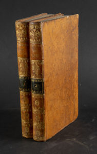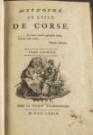 [POMMEREUL (Jean-François René de)]. — Histoire de l'isle de Corse. — Berne, Chez la Société typographique 1779. — 2 volumes in-8, basane racinée, dos lisse orné, pièces de titre fauve et de tomaison noire, tranches jaunes mouchetées de...