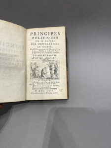 TURMEAU DE LA MORANDIÈRE. — Principes politiques sur le rappel des protestants en France. — Amsterdam, aux dépens de la Compagnie, 1764. — 2 parties en un volume in-12, basane marbrée, dos orné, tranches marbrées (Reliure de l'époque).