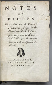 CHAUVIN-HERSANT (François-Augustin). — Notes et pièces recueillies par le Comité d'instruction publique de la Société populaire de Poitiers. — Poitiers, De l'Imprimerie de Barbier,s.d. - Procès-verbal des séances de la Société populaire...