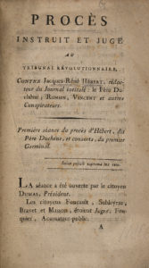 - DUMAS. Rapport fait à la Société des amis de la liberté et de l'égalité, sur les conspirations d'Hébert, Ronsin, Vincent et leurs complices... Paris, Imprimerie des Sans-Culottes, s.d.