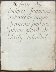 MANUSCRIT. — Défense des Émigrés français adressée au peuple français par Trophime Gérard de Lally Tolendal. — S.l.n.d.[c. 1797].