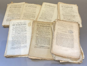 Réunion de 70 numéros de ces journaux de Marat publiés entre 1792 et 1793.