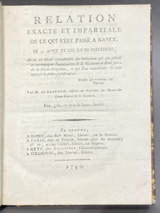 Édition originale de la principale source historique concernant la mutinerie de Nancy, de loin la plus grave des insurrections militaires sous la Révolution.