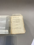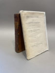 Page de titre du premier ouvrage en partie collée sur le contreplat supérieur. Reliure usagée (coiffes manquantes, charnière supérieure fendue).