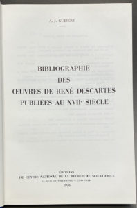 BIBLIOGRAPHIE. - GUIBERT. — Bibliographie des œuvres de René Descartes publiées au XVIIe siècle. — Paris, CNRS, 1976. — In-8, cartonnage toile de l'éditeur.
