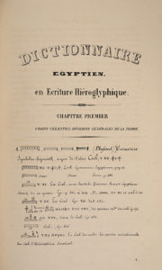 Édition originale de ce célèbre dictionnaire, ouvrage qui fait la synthèse de toutes les recherches et de tous les travaux effectués par Champollion sur l'ancienne écriture des Égyptiens.