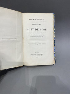 COOK (James). - Centenaire de la mort de Cook célébré le 14 février 1879 à l'Hôtel de la Société de géographie. — Extrait du Bulletin de la Société de géographie (mai 1879). — Paris, Société de géographie, 1879. — In-8, bradel...