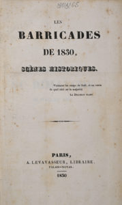 DEBRAUX (Émile). — Les Barricades de 1830. — Scènes historiques. — Paris, P. Levavasseur, 1830. — PERDRIX (J. B.). — L'Absolutisme dévoilé, ou révélation et réfutation des abus au moyen desquels l'ancienne noblesse et le haut clergé...