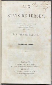 Après le coup d'état de 1851, et terminée la communauté utopiste de Boussac où Leroux regroupait ses disciples, le théoricien socialiste se réfugia à Jersey, comme Hugo dont il était le voisin. Il tente de donner ici des leçons de socialisme et de développement agricole aux Jersiais.
