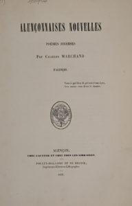 MARCHAND (Charles). — Alençonnaises nouvelles poésies diverses. — Alençon, chez l'auteur et chez tous les libraires ; Poulet-Malassis et Debroise, 1857. — Grand in-8, broché, sous chemise et étui de papier noir.