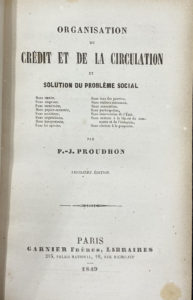 Avec, reliés en tête, du même : Organisation du crédit et de la circulation, et solution du problème social. Troisième édition. - Résumé de la question sociale, banque d'échange. Paris, Garnier frères, 1849.