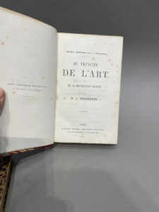 PROUDHON (Pierre-Joseph). — Du principe de l'art et de sa destination sociale. — Paris, Garnier frères, 1865. — In-12, demi-chagrin rouge, dos orné, chiffre AFD doré en queue (Reliure de l'époque).
