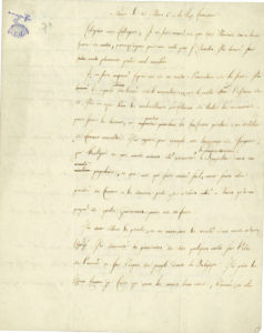 Il raconte son arrivée à la Convention, où les esprits sont consternés de « l'affaire du 18 » (déroute de Dumouriez à Neerwinde), et où l'on répand quantité de fausses nouvelles. Camus a demandé la parole « sur l'etat de l'armée et sur l'esprit du peuple dans la Belgique [...] l'armée en etat de se defendre et n'ayant reellement a redouter que l'indiscipline et la trahison des taches et des fuyards ; les Belges comme un peuple qui veut s'unir à la Republique, qu'on a exasperé par des imprudences des vexations »... Camus est ensuite allé au Comité de la guerre et au Comité de défense générale, où l'on a beaucoup parlé « des Generaux et de leurs fautes ». Il relate alors son altercation avec Camille DESMOULINS, accusant Treilhard et Camus d'avoir, en reconnaissance de services rendus sous l'ancien régime, destitué Dampierre de son commandement pour le donner à Lanoue, et d'avoir à peu près destitué Fourcade, Gouchon et Fauchet « qui travailloient utilement dans la Belgique ». Camus demande à ses collègueees de l'aider à se justifier. Il parle ensuite de l'éventuel envoi de gardes nationales en Belgique...Ancienne collection Patrice Hennessy (avec son cachet).