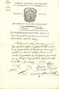 Les signataires sont les conventionnels Philippe BOLLET, Louis-Urbain BRUË, Étienne CHAILLON, Pierre-Marie DELAUNAY, Claude DORNIER, François Joseph JARY, Louis Prosper LOFFICIAL, Henri MENUAU, Charles MORISSON, André POMME l'Américain et Albert RUELLE.