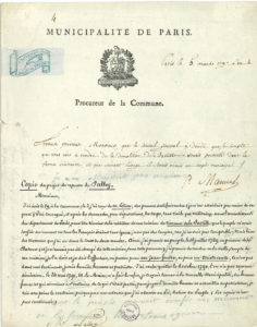 MANUEL avertit Palloy que « le Conseil Général a décidé que le compte que vous avés à rendre de la démolition de la Bastille serait présenté dans la forme ordinaire, et que suivant l'usage il serait remis au corps municipal ».