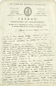 Stanislas-Louis-Marie FRÉRON (1754-1802) journaliste, conventionnel (Paris), chargé de missions dans le Midi où il se signala par de sanglantes répressions ; après Thermidor, il dirigea la jeunesse réactionnaire et fut l'amant de Pauline...