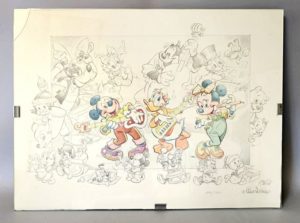 Mickey, Donald, Minnie. Une sérigraphie en couleurs de Claude MARIN Mickey, Minnie et Donald …