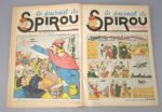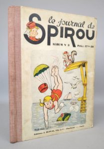 Le Journal de SPIROU. Album N°3. N° 1 à 17 de la 2ème année (5-1-1939 à 27-4-1939). Demi-toile rosée, plats illustrés. Couvertures en état correct. N° 1 avec de petits défauts sur les bords, N°8 avec une petite découpe page 17, les autres numéros en excellent état.