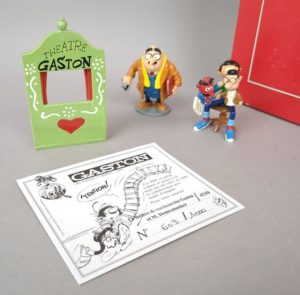 PIXI - GASTON - FRANQUIN Le Théâtre de marionnettes - Gaston et M. Demesmaeker. Référence 4749. 2003. Tirage à 1000 exemplaires. 3 pièces. Complet dans sa boite, avec certificat (N°609). Etat neuf