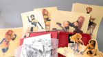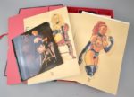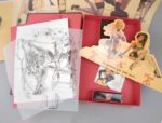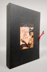 Félix MEYNET - Fleur de cuir - Le parfum qui fait mal. Coffret avec 12 sérigraphies en couleurs, 2 calques, 1 silhouette, une présentation en 3 feuillets repliés, 1 poudrier et 1 parfum, et le certificat numéroté. Exemplaire numéroté 291/375, signé par MEYNET - Editions Horizon - non daté. Coffret bien complet, très bon état, mais eau de parfum évaporé…