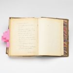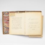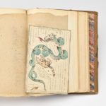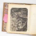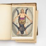 [Esotérisme] [Manuscrit] ELIPHAS LEVI [CONSTANT (Louis-Alphonse)] : la Sagesse des Anciens. Recueil de figures symboliques avec légendes et explications, par Eliphas Levi, professeur en sciences occultes. 1874. Un volume. 19 par 26 cm. 401 pages (complet). Demi-basane mouchetée de l’époque, dos lisse avec 4 filets dorés, plats illustrés d’une grande plaque dorée. Quelques frottements au dos, or des plats légèrement passé, coins émoussés, charnières intérieures faibles, exemplaire en partie déboité. Mais bon état général. Le manuscrit se compose de 99 figures (photographies, gravures, dessins à la plume, aquarelles) commentées dans un ensemble qui se veut une synthèse générale d’une pensée qui englobe les religions, la Kabbale, la Franc-Maçonnerie, etc. Première série : le Sohar et la Kabbale Deuxième série : la Prophétie de Paracelse 3ème série : Péché, Enfer, Mort et Rédemption. 4ème série : Sagesse indienne. 5ème série : Sagesse comparée de la Bible et de l’Evangile. 6ème série : Egypte. Kabbale et magie. 7ème série : Clés du Tarot Egyptien. Cette dernière série comprend une Astrologie symbolique, et Le Sermon du diable sur la montagne. En particulier sont commentées les 32 figures de la « Prognosticatio eximii doctoris Theophrasti Paracelsi (édition de 1536, reproduite en photographie), les cles du tarot égyptien avec toutes ses figures, et une astrologie symbolique présentée par 14 aquarelles de la main d’Eliphas LEVI, abondamment commentées sur leur verso. Chaque illustration est laissée libre, retenue dans le manuscrit par un repli de la page. Et précédée par une page de commentaires manuscrits de la main d’Eliphas Lévi. Le manuscrit est bien complet de toutes ses illustrations, et est signé en fin par Eliphas Lévi. « Manuscrit original de la main du célèbre Eliphas Lévi, composé un an avant sa mort. C’est vraisemblablement de ce recueil qu’Eliphas Lévi veut parler lorsqu’il écrit le 23 Janvier 1974 à son élève le baron de Spédaliéri : j’espère toujours que nous reprendrons nos leçons régulièrement et que nous finirons notre cours qui reste inachevé ; L’album auquel je travaille en sera le complément et comme l’atlas. » Cet album manuscrit reste inédit. Alphonse-Louis CONSTANT (1810-1875), qui prit le nom d’auteur de Eliphas Lévi Zahed, traduction en hébreu de son nom, a eu une vie bien remplie. Imprégné de religion, engagé politique, utopiste, franc-maçon, cabaliste, peintre (il illustra des romans de DUMAS), il fut un grand érudit et consacra la majeure partie de son œuvre à des analyses ésotériques très savantes. Il reste célèbre pour ses écrits occultistes d’une grande profondeur. « Provenance de ce manuscrit : Bibliothèque de Christiane Buisset, fondatrice du Cercle Eliphas Lévi, également fondatrice de plusieurs Loges Maçonniques dans le Rite de Memphis (rite égyptien) ». Ce manuscrit a appartenu à Stanislas de GUAITA, érudit et ésotériste célèbre, N°1348 du catalogue de sa bibliothèque. Un document unique, qui devrait être publié… Pour collectionneur passionné.