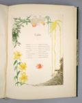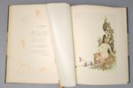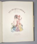 Collectif et DETOUCHE (Henry): les péchés capitaux. Paris, Librairie artistique Boudet, 1900. Un volume. 26,5 par 35 cm. 19 feuillets non numérotés. Avec 9 compositions en couleurs d'Henry DETOUCHE: couverture, table et chacun des 7 péchés capitaux. Demi-maroquin empire d'époque à coins, dos lisse, bradel, couvertures conservées, tête dorée. Reliure signée DURVAND. Dos et plat supérieur légèrement insolé, quelques frottements. Excellent état intérieur (deux rousseurs en marge d'une gravure, discrètes). Poésies inédites d'Edmond Haraucourt, Jules de Marthold, Francis de Croisset, Marc Legrand, Emile Verhaeren, Henri de Régnier et André Fontanas. Chaque péché est introduit par un ornement marginal lui faisant subtilement référence (Plume de paon pour l'Orgueil, Monnaie du pape ou Herbe aux écus pour l'Avarice, Anthurium pour la Luxure, Oiseaux se gavant de cerises pour la Gourmandise, Chardon pour la Colère, etc.). Ces éléments, en tirages de divers tons monochromes, illustrent également la poésie inspirée par les divers péchés en vis-à-vis de la gravure à pleine page. Une très belle réalisation