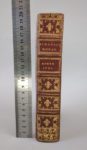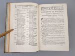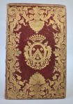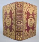 [reliure armoriée] D'HOURY (Laurent): Almanach Royal, année Bissextile 1784. Paris, d'Houry, 1784. Un volume. 12 par 19,5 cm. 683 pages. Plein maroquin rouge d'époque, plats très richement décorés avec au centre des armes (3 trèfles avec un chevron), correspondant à plusieurs familles (Barthelot (Barthelot de Murseau) ou Berthelot, Lynch, Lynch-Blosse (En, Irl), Cupif (Cupif de la Robinnaye), Tardif (Tardif de Boisseaucoeur) ou Gaillon). Dos 5 nerfs richement décoré de motifs de fleurs de Lys, roulette sur coupes, dentelle intérieur, gardes en moire bleu ciel, toutes tranches dorées. Reliure dans un excellent état, ce qui est rare. Excellent état intérieur. Une reliure exceptionnelle, pour collectionneur.