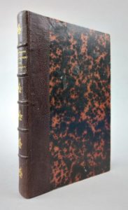 VINGTRINIER (Aimé): les vieux papiers d'un imprimeur. Recueil poétique. Lyon, Scheuring, 1872. Un volume. 14 par 22 cm. (4)-219 pages. Demi-maroquin grenat d'époque, dos 5 nerfs, caissons décorés de motifs floraux, couvertures conservées, ex. non rogné. Reliure en très bon état. Couvertures conservées avec des traces d'humidité en marge, sinon bon état intérieur. Les poèmes délicats de Vingtrinier sont encadrés d'un filet rouge.