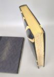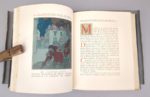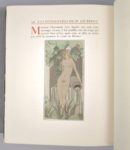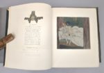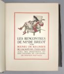 [reliure armoriée] REGNIER (Henri de): les rencontres de Monsieur de Bréot. Avec des ornements et des figures en couleurs de Sylvain SAUVAGE. Paris, Sylvain Sauvage, 1927. Un volume. 22 par 27,5 cm. (6)-251 pages. Plein box mosaïqué crème et noir, dos lisse, couvertures et dos conservés, large encadrement intérieur en box crème et noir, gardes en tissu gris bleu, tête dorée. Avec sa chemise en demi-veau noir, doublée. Reliure signée CREUZEVAULT. Parfait état de la reliure. Quelques rousseurs sur les tranches, quasiment sans débord sur les pages, et sur les marges de trois feuillets. Sur le second plat, sous une forme discrète, les armes de Sir ABDY (1896-1976), célèbre bibliophile anglais. Tirage limité à 165 ex. celui-ci N° 113, sur vélin d'Arches. Avec un envoi manuscrit de l'illustrateur: réservé à Sir Abdy, avec les hommages de sylvain Sauvage. Exemplaire enrichi d'un dessin original en couleur de toute beauté. Un exemplaire pour collectionneur.