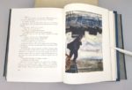 VERCEL (Roger): Remorques. Lithographies originales en couleurs de René GENIS. Paris, Bibliophiles de France, 1957. Un volume. 24,5 par 32,5 cm. 247 pages. Plein maroquin bleu nuit, dos lisse, tête dorée, couvertures et dos conservés, garde de papier «bois», chemise de demi-maroquin à bande, doublée, plats en papier «bois», et étui bordé. Reliure signée Lucie WEILL. Parfait état de l'exemplaire. Tirage à 140 exemplaires, tous sur vélin pur fil. Exemplaire 67, nominatif pour Lucie WEILL-QUILLARDET. Une illustration très proche de l'atmosphère marine de l'ouvrage, dans une reliure presque austère, mais d'une grande qualité.