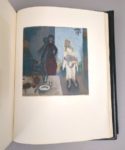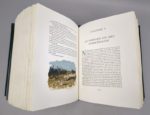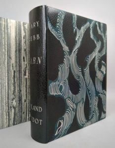WEBB (Mary): Sarn. Compositions de Roland OUDOT gravées sur bois par Théo SCHMIED. Paris, Creuzevault, 1950. Un volume. 24,5 par 32,5 cm. XVI-281 pages. Plein maroquin noir, plats mosaïqués de grandes volutes de box vert émeraude parsemées de filets argentés ondulant et évoquant des branches d'arbre, contreplats et gardes de daim noir, tranches argentées, sous chemise demi-maroquin noir à bande, à recouvrement doublée de fine peau noire, plats ornés de papier strié dans les tons gris, dos lisse, titre argenté au dos, sous étui bordé. Reliure signée Creuzevault. Parfait état de l'exemplaire. 57 bois en couleurs au repérage dont 1 sur la couverture et 4 hors-texte, les autres in-texte de dimensions variables. Tirage à 275 exemplaires numérotés dont 25 hors commerce, tous signés par l'artiste et paraphés par l'éditeur. Un des 50 exemplaires de tête sur vélin de Rives (n°3) accompagnés d'une suite en couleurs des 57 illustrations sur vergé de Montval. Henri CREUZEVAULT, (1905-1971) est relieur (et fils de relieur) et éditeur. Très marqué par Sarn, il en donnera deux éditions, la première illustrée par Hermine David, et celle de Raymond OUDOT, plus convaincante. Une édition splendide, dans une reliure exceptionnelle. Pour collectionneur.