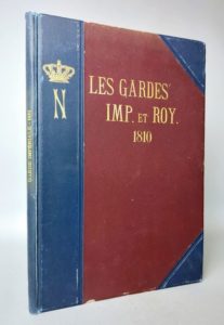 [Militaria] [1er Empire] [Professeur SUHR] et TERREL des CHÊNES: Représentation des uniformes de toutes les troupes qui ont été casernées à Hambourg, de l'année 1806 à l'année 1815. Reproduction de l'album dit Manuscrit du Bourgeois de Hambourg, conservé à la Bibliothèque Nationale. Paris, chez l'auteur [Terrel des Chênes], 1902. Un volume. 25 par 32,5 cm. (4)-158 planches en lithographie coloriées-(3) pages. Sous étui en demi-percaline rouge à coins, plat titré. Les rabats en papier protégeant les planches sont absents. Une planche avec une pliure en marge. Sinon excellent état. Très beau tirage des 158 illustrations en couleurs (complet). Tiré à 155 exemplaires numérotés. Notre exemplaire (N°75) sur vélin, signé par l'auteur. Ce recueil est très important pour le costume militaire de l'époque et renferme des représentations de militaires de l'Espagne (30), Italie (4), France (58), Hollande (35), Westphalie (7), alliés de la France (5), alliés de l'Allemagne (5), Danemark (3), Suède (1), Russie (7). En particulier, il donne des renseignements uniques sur les corps de la Romana espagnole, sur les marins de la Garde, etc. Réalisée à la demande de la Sabretache, célèbre revue militaire, c'est la meilleure reproduction du Manuscrit du Bourgeois de Hambourg qui existe. Ex-libris de Marcel DUNAN, grand historien du 1er Empire.